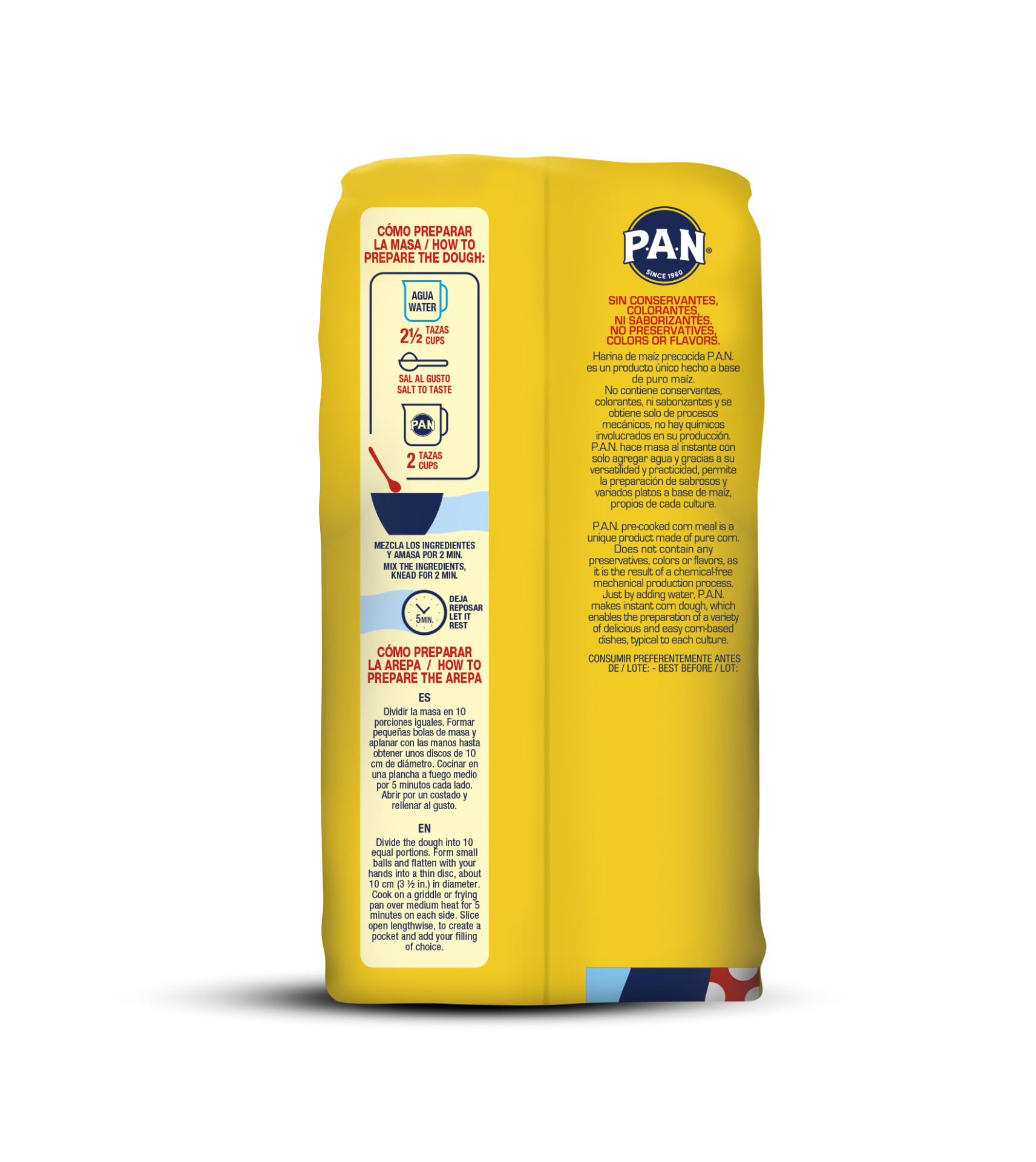 La Harina Precocida de Maíz Blanco P.A.N. es harina de 100% maíz blanco seleccionado, sin conservantes, ni colorantes, por lo cual es un producto de calidad excepcional, ideal para la rápida y fácil preparación de las más variadas y deliciosas recetas.