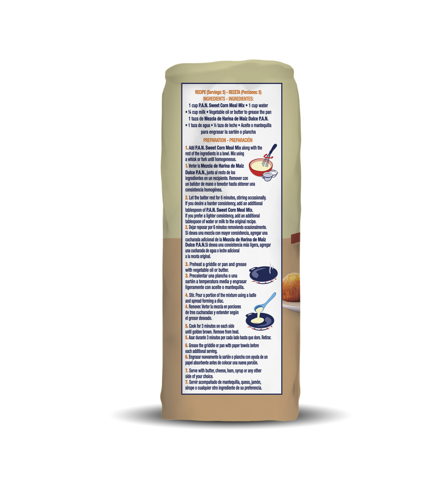 La mezcla Sweet Corn Pancake Mix P.A.N. está hecha con las mejores mazorcas tiernas, para elaborarrecetas de maíz dulce. Ideal para preparar cachapas, pan de maíz dulce, envueltos, tamalitos dulces, arepas de choclo, panecillos, tortas entre otros.